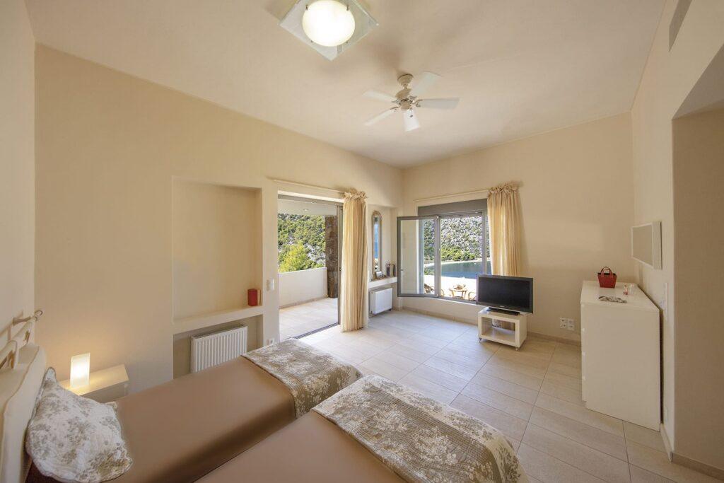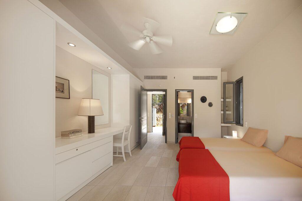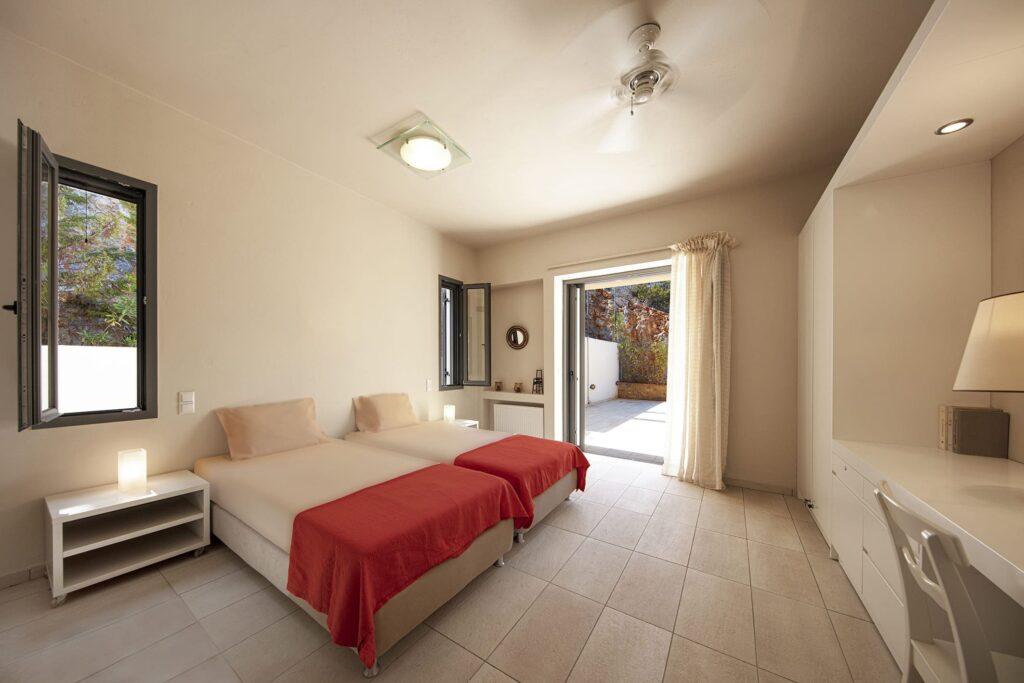 Crystal View Villa accommodates up to eight guests in four spacious bedrooms. Each room features elegant furnishings, ample storage, and large windows that frame stunning sea views. Since every suite is designed for privacy and relaxation, guests experience absolute comfort throughout their stay.
