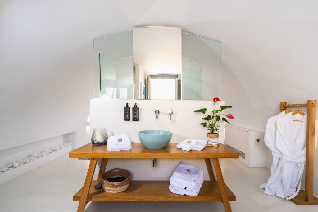 Housekeeping at Eleion Estate includes daily service, with linen changes every two days and towels refreshed daily. Enhanced cleaning protocols are in place, and the entire property is secured with an advanced alarm system. Therefore, you can trust that Eleion Estate meets the highest standards for luxury villa rentals in Santorini.