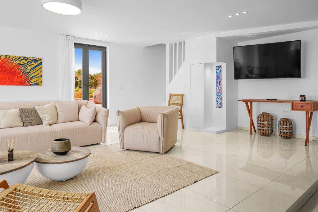 Every essential is provided to ensure a seamless stay at Eleion Estate. For example, you receive high-speed Wi-Fi, advanced floor heating and cooling, and premium linens in every bedroom. Because the estate includes a water desalination system, safe boxes, and a state-of-the-art alarm, comfort and security are guaranteed. Therefore, you can relax and enjoy peace of mind throughout your visit.