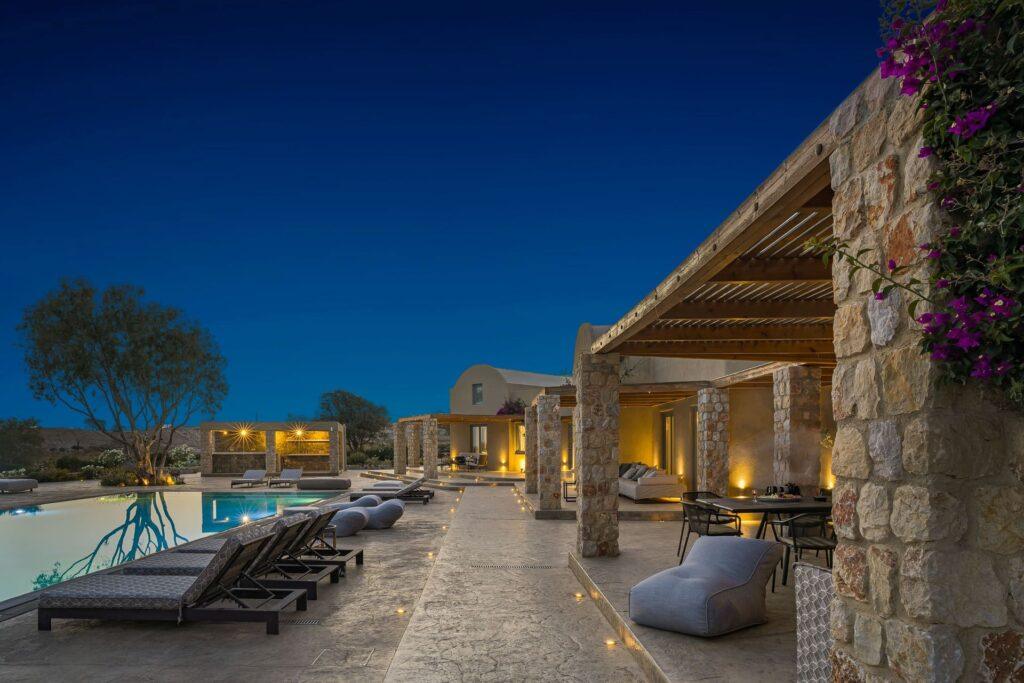 Eleion Estate is designed for leisure and enjoyment. You can swim in the heated pool, play tennis, or host elegant gatherings on the panoramic terraces. Whenever you seek relaxation or celebration, every detail is curated for luxury. Thus, your Santorini experience becomes truly unforgettable.