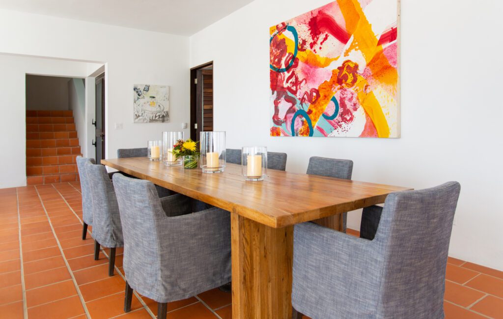 The gourmet kitchen at Villa Emerald is built for culinary excellence. With state-of-the-art appliances and elegant design, it is ideal for private chef experiences or casual family meals. Moreover, the kitchen opens to indoor and outdoor dining areas, so every meal can be enjoyed with breathtaking ocean views and fresh Caribbean breezes.