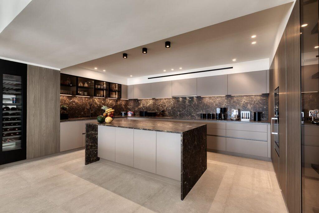 Culinary enthusiasts will adore the two gourmet kitchens within the estate. These spaces feature high-end Gaggenau appliances and ample preparation counters. Furthermore, the layout supports both casual family breakfasts and formal private chef dinners. We designed these culinary havens to satisfy even the most demanding gourmets. Therefore, every meal becomes a delightful experience of taste and style.