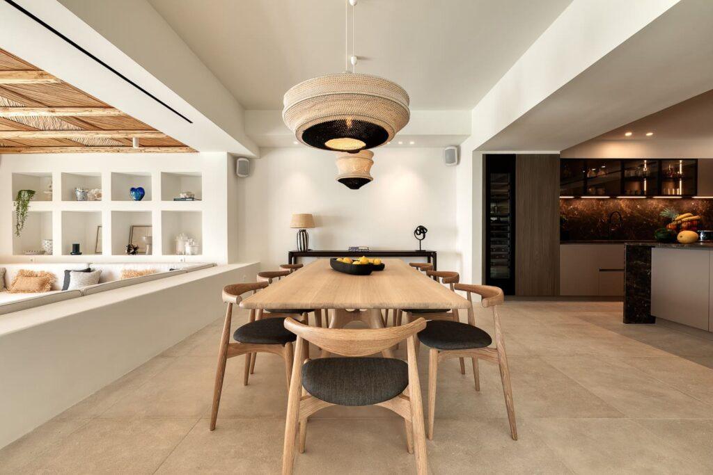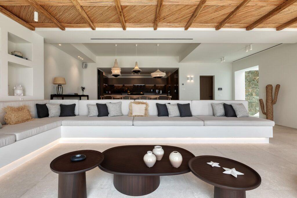 Pneuma Estate sets a new standard for large-scale luxury accommodation in Mykonos. The 13-bedroom property integrates advanced smart home systems throughout its living spaces. Additionally, high-speed Wi-Fi and elevator access ensure convenience for every guest. The design maximizes the natural light and frames the stunning views of the Aegean. Consequently, the villa provides a modern, frictionless environment for relaxation.