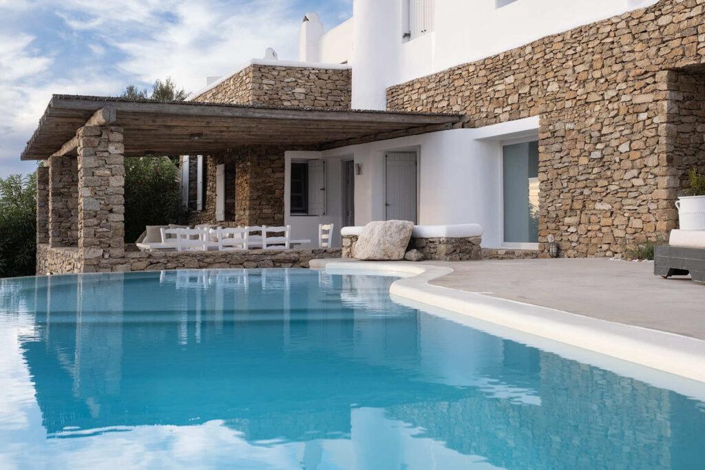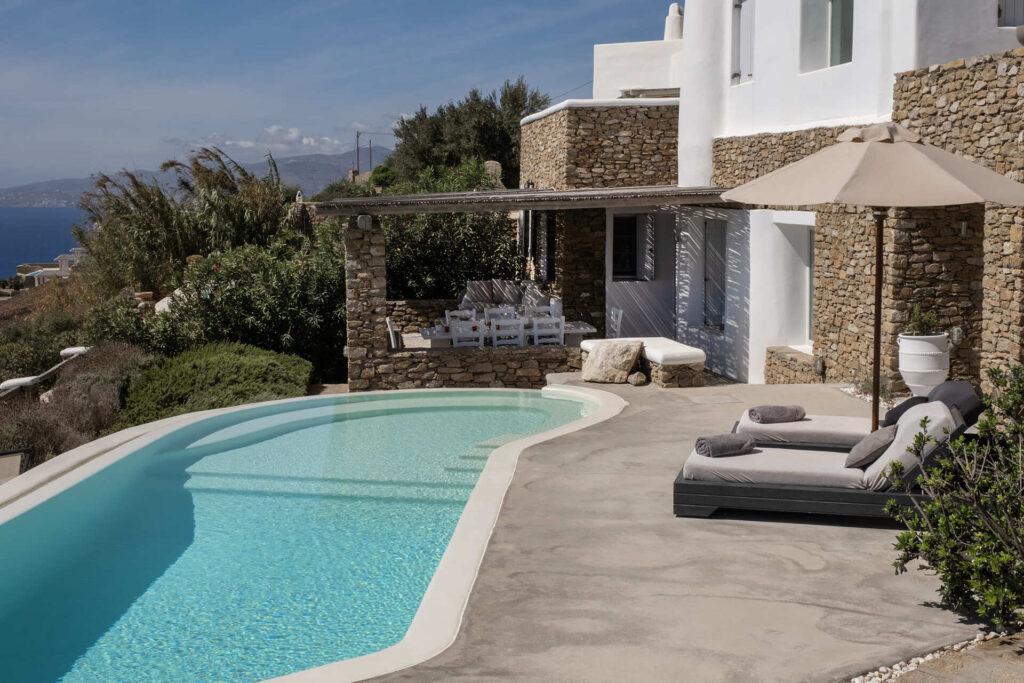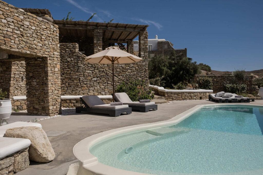 Welcome to Villa Aither, a luxury villa in Mykonos with sea view, infinity pool, and Cycladic architecture. This serene escape blends natural stone, wood, and beach cobbles with crisp white island style. The villa’s flowing spaces and tranquil terraces evoke a sense of movement and stillness—each hour brings a new perspective over the Aegean. Designed for guests seeking privacy, design, and elevated hospitality, Villa Aither is a hypnotic retreat for both relaxation and exploration.