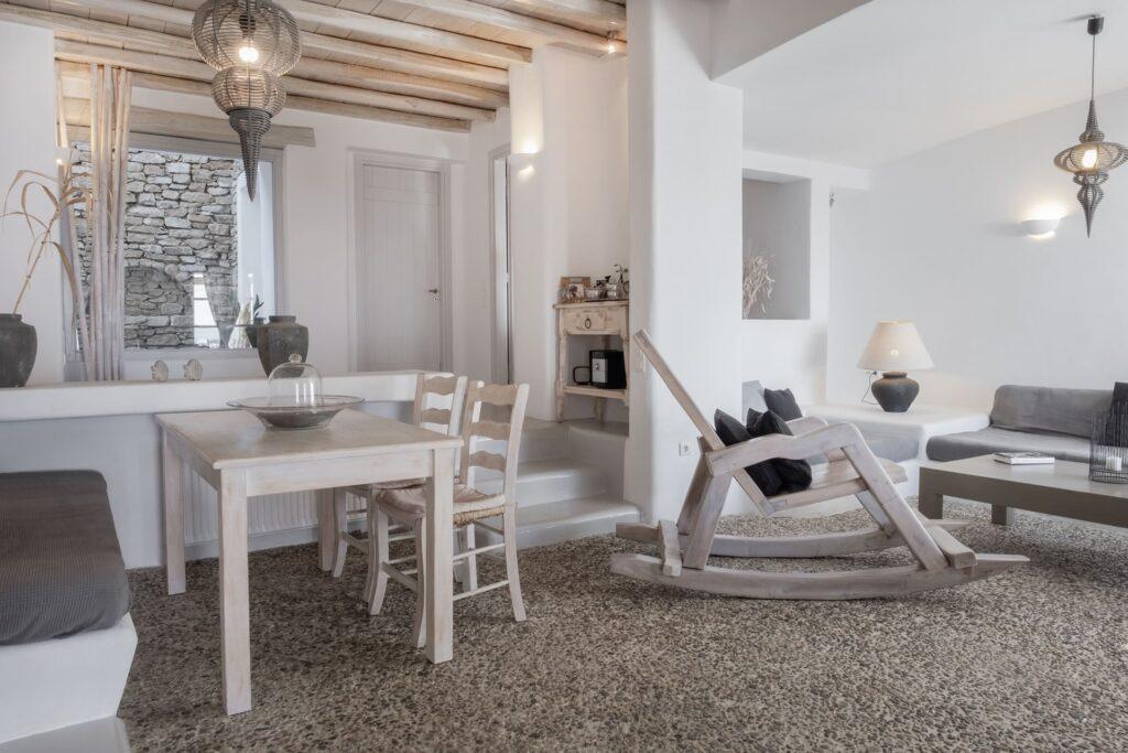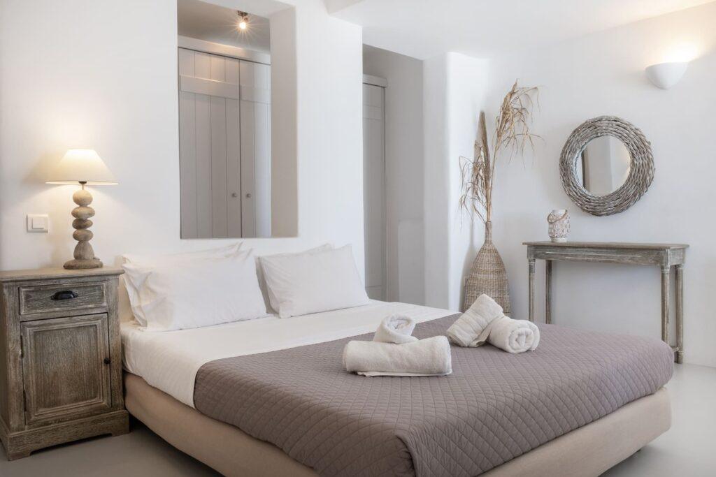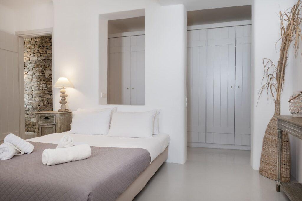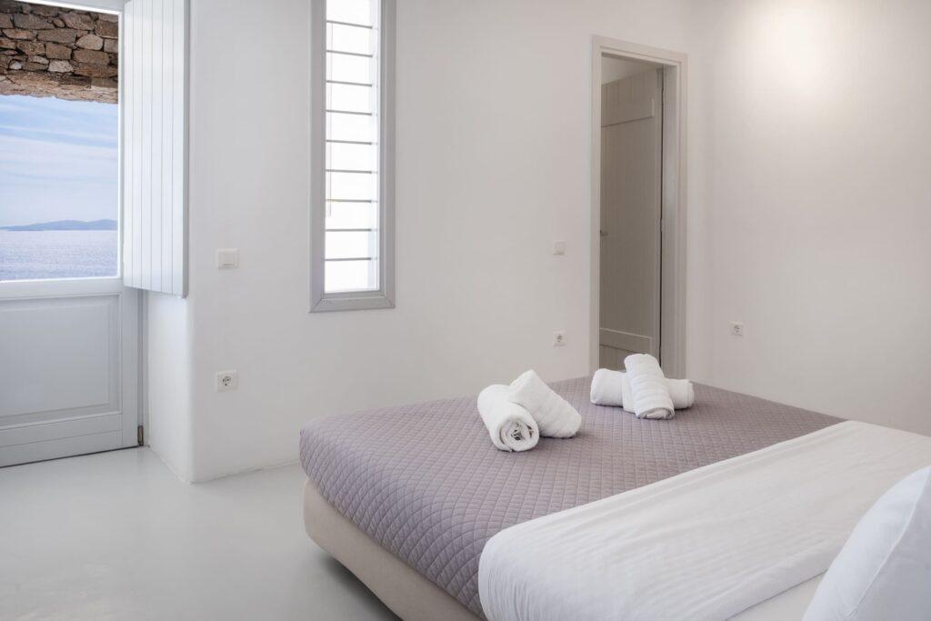 Secure on-site parking is available for multiple vehicles. In addition, a private access road ensures smooth arrivals and departures. Therefore, this convenience is ideal for guests who value privacy and effortless mobility during their luxury stay in Mykonos.
