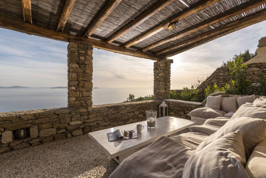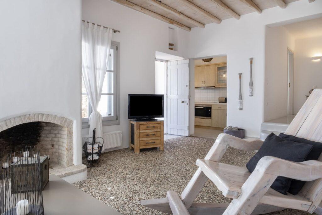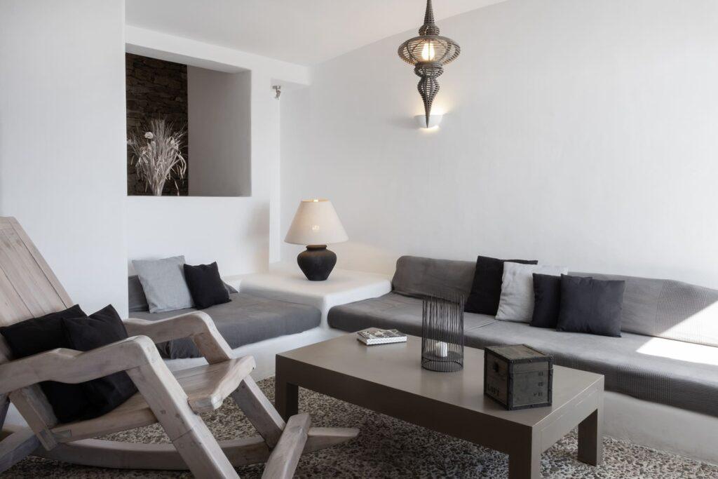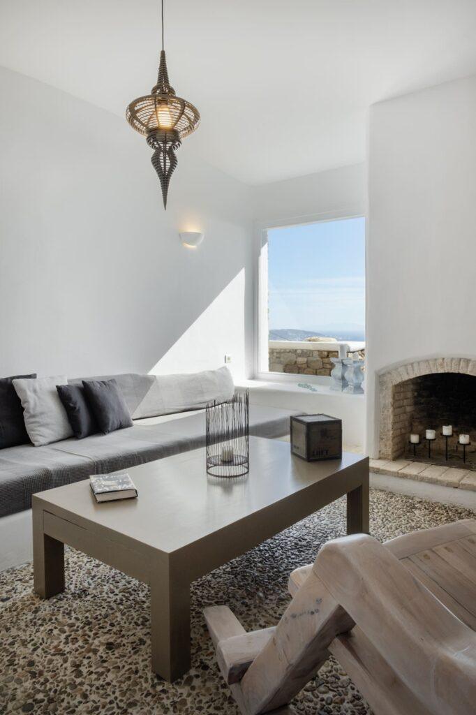 Every detail at Villa Aither is engineered for supreme comfort. For instance, ergonomic furnishings and luxury bedding ensure restful nights. Moreover, climate-controlled interiors and a cozy fireplace create a refined, relaxing atmosphere throughout your Mykonos escape.