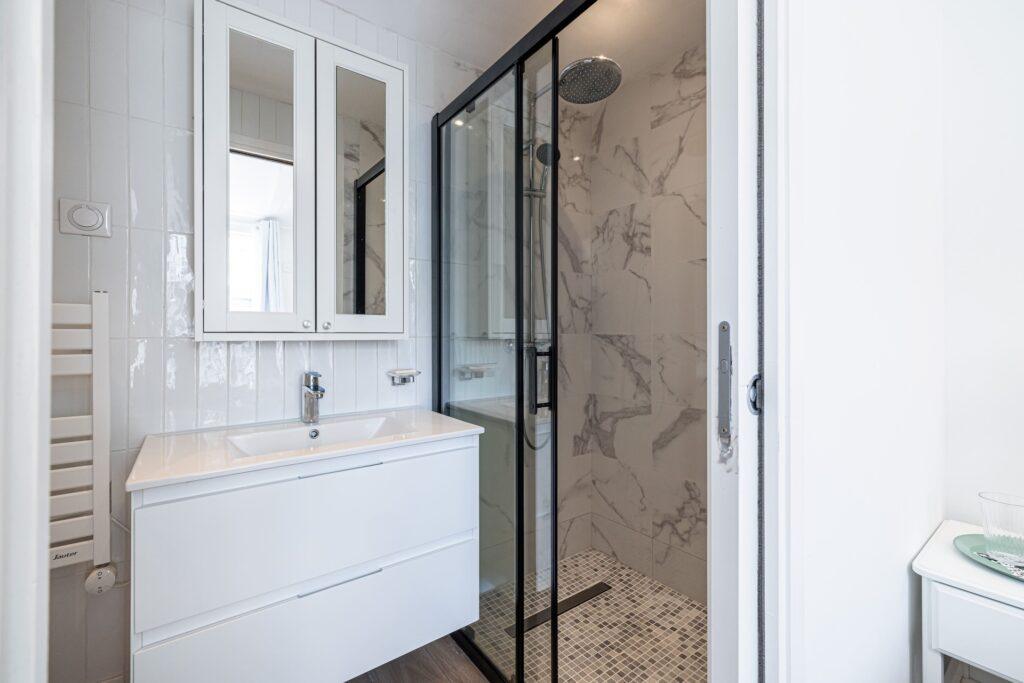 The heated swimming pool is the centrepiece of the outdoor space. A high-spec exterior sauna sits beside it. Furthermore, a rooftop jacuzzi terrace offers sun beds and swings. It provides a secluded haven for relaxing under the French sun. Guests enjoy this wellness hub morning or evening.