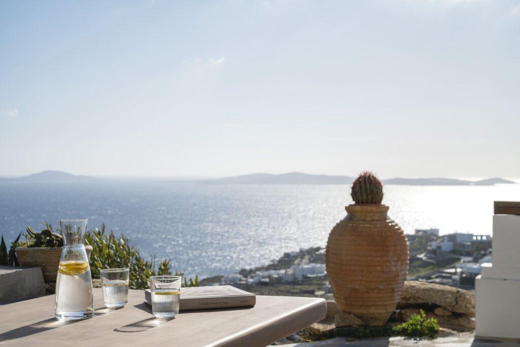 Villa Lumen sits in the tranquil Fanari region of Mykonos. It is positioned near the island’s historic northern lighthouse. The estate captures a 180-degree panoramic view of the Aegean Sea. Furthermore, it offers the finest sunset vantage point on the island. Key distances from Villa Lumen: