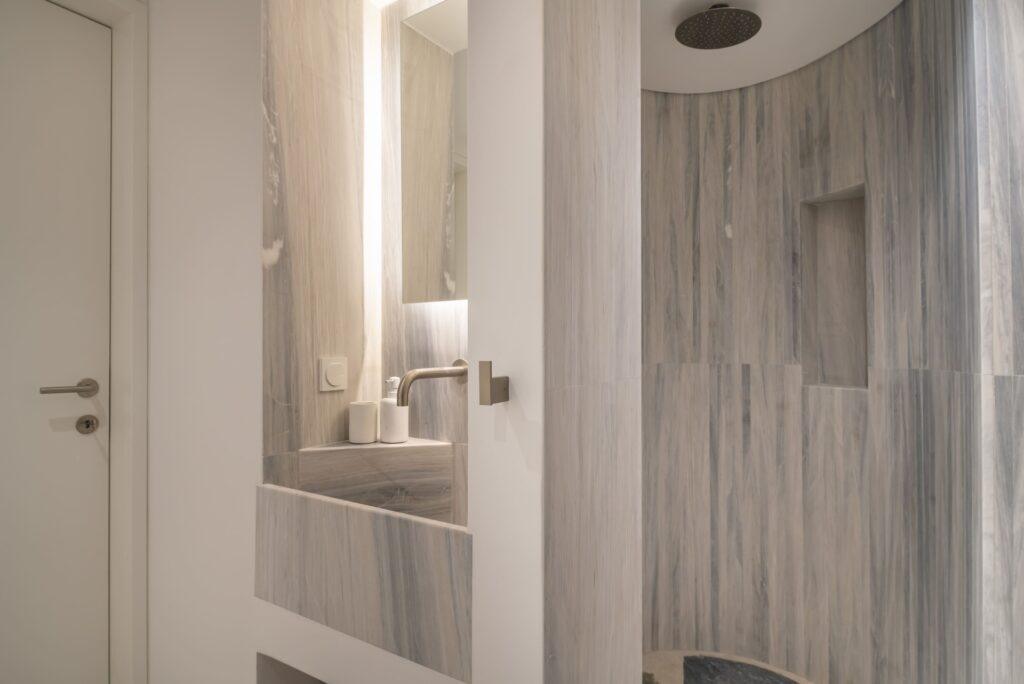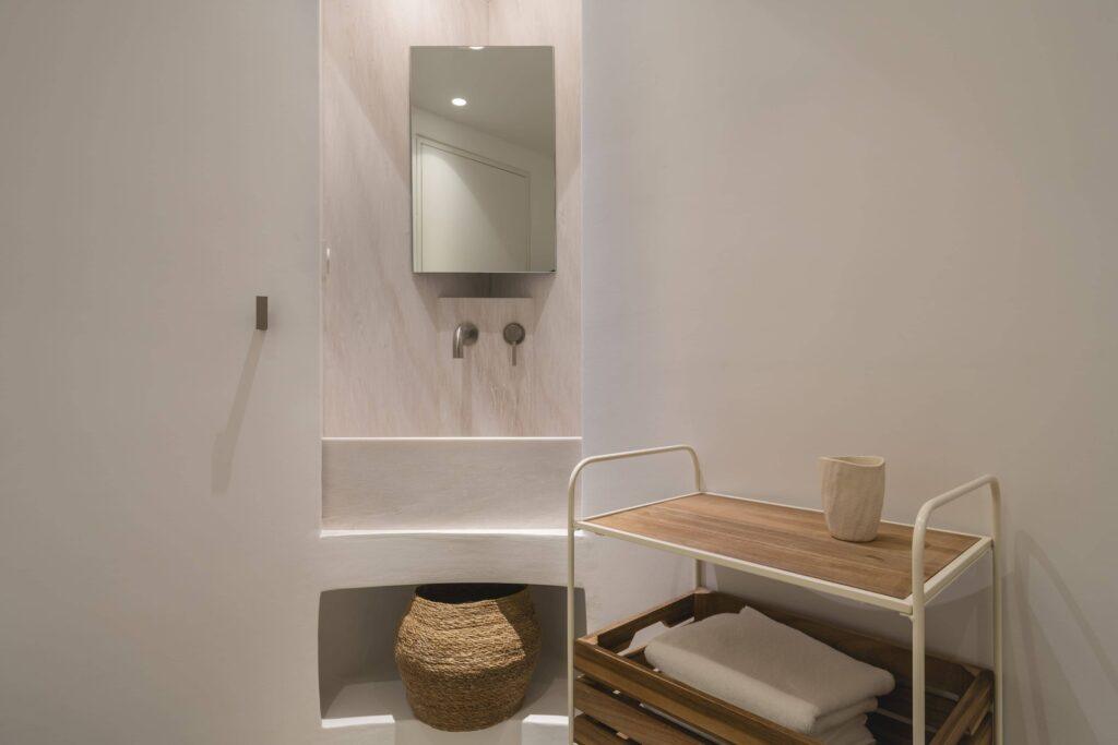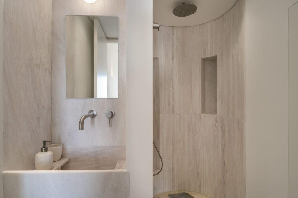 Villa Lumen features a main residence and three independent guesthouses. The total configuration offers five beautifully designed bedrooms. Natural stone floors run throughout the property. Soft neutral palettes create a calm, grounding atmosphere. The main house has a bright living room and a fully equipped kitchen. In addition, three independent suites offer private entrances and kitchenettes. As a result, the villa suits multi-family groups perfectly. Each guesthouse provides self-contained luxury and total privacy.