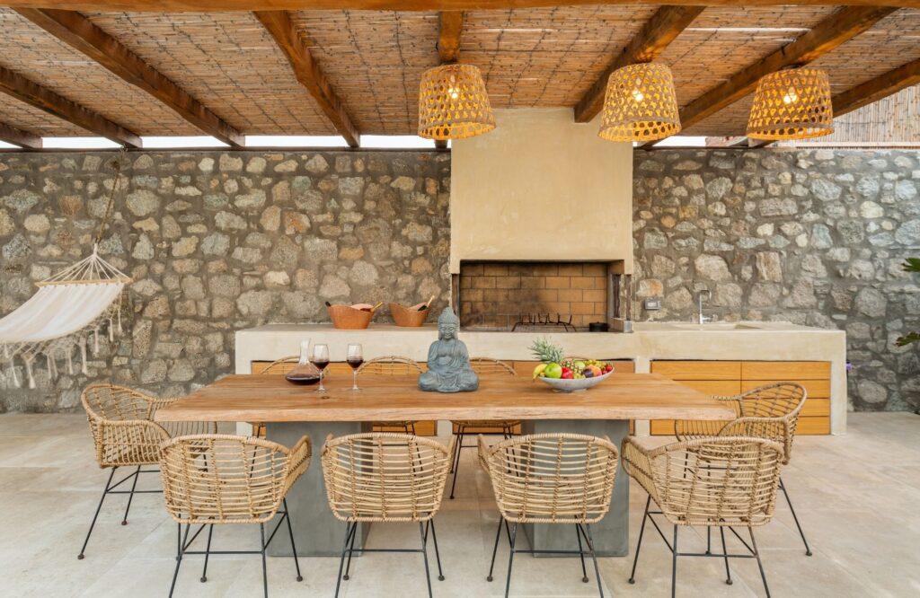 The estate houses a fully equipped gourmet kitchen designed to satisfy the most demanding culinary standards. This space features state-of-the-art appliances, including professional coffee makers and dual refrigeration systems. Furthermore, the open-plan layout connects directly to the indoor dining area and the shaded outdoor pergolas. Whether you enjoy a gourmet breakfast by our chef or host an intimate dinner, the facilities are engineered for perfection. Therefore, every meal at Villa Node becomes an extraordinary event.