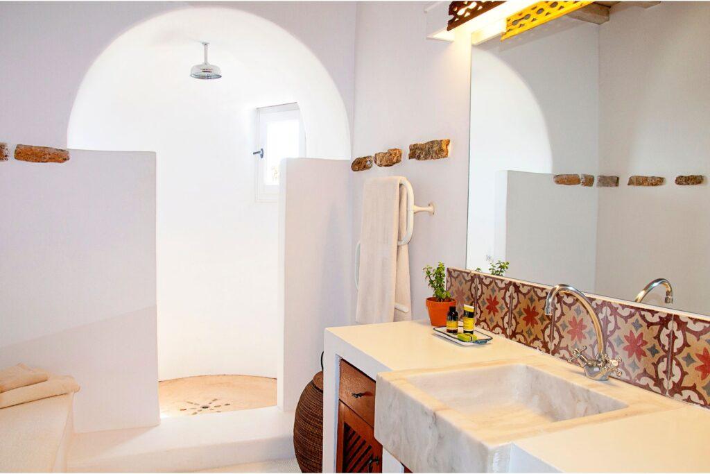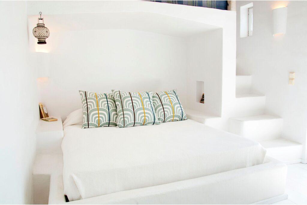 - Whitewashed traditional Cycladic architecture with modern finishes