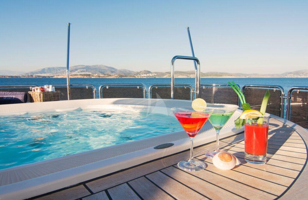 Charter Option B, the timeless 37m Benetti Classic 121 superyacht, and explore Greece in refined Italian style. Built in 2012 and comprehensively refitted in 2022, Option B welcomes up to 12 guests across six beautifully appointed cabins — a full-beam master suite on the main deck, a VIP stateroom, two double cabins and two twin cabins — all attended by a dedicated crew of seven. Furthermore, French designer François Zuretti shaped every interior space to feel warm, modern and effortlessly elegant. In addition, the sun deck delivers a U-shaped Jacuzzi lounge, a cocktail bar, sunpads and a bimini, making Option B charter Greece the ideal escape for families and groups who value both comfort and style on the water.